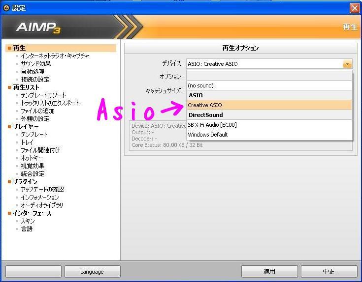 因みにASIO非対応でも擬似ASIO出力できるソフトがあるので、興味あればググってみてください。