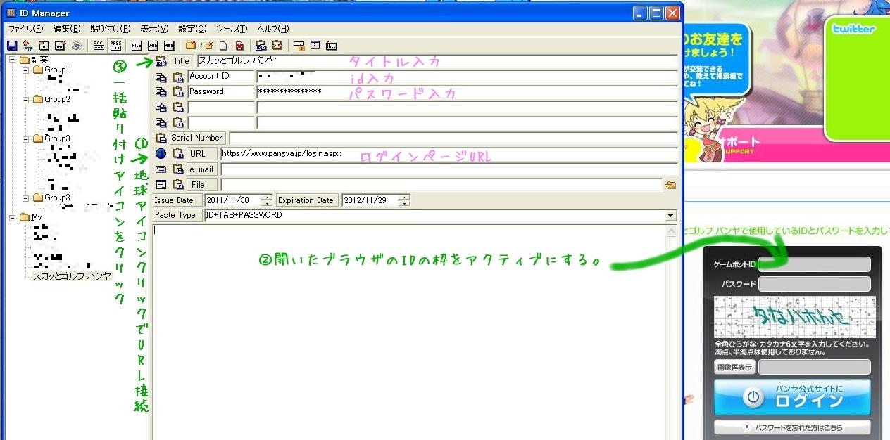 すると自動的にIDとパスが貼りつけられる。(マクロみたいなもの?)