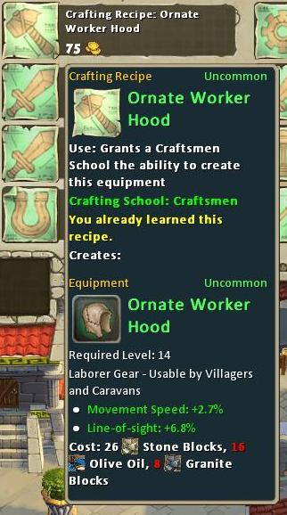 あとは作成したアイテム(ORANTE WORKER HOOD)を右クリックして装備するだけ。