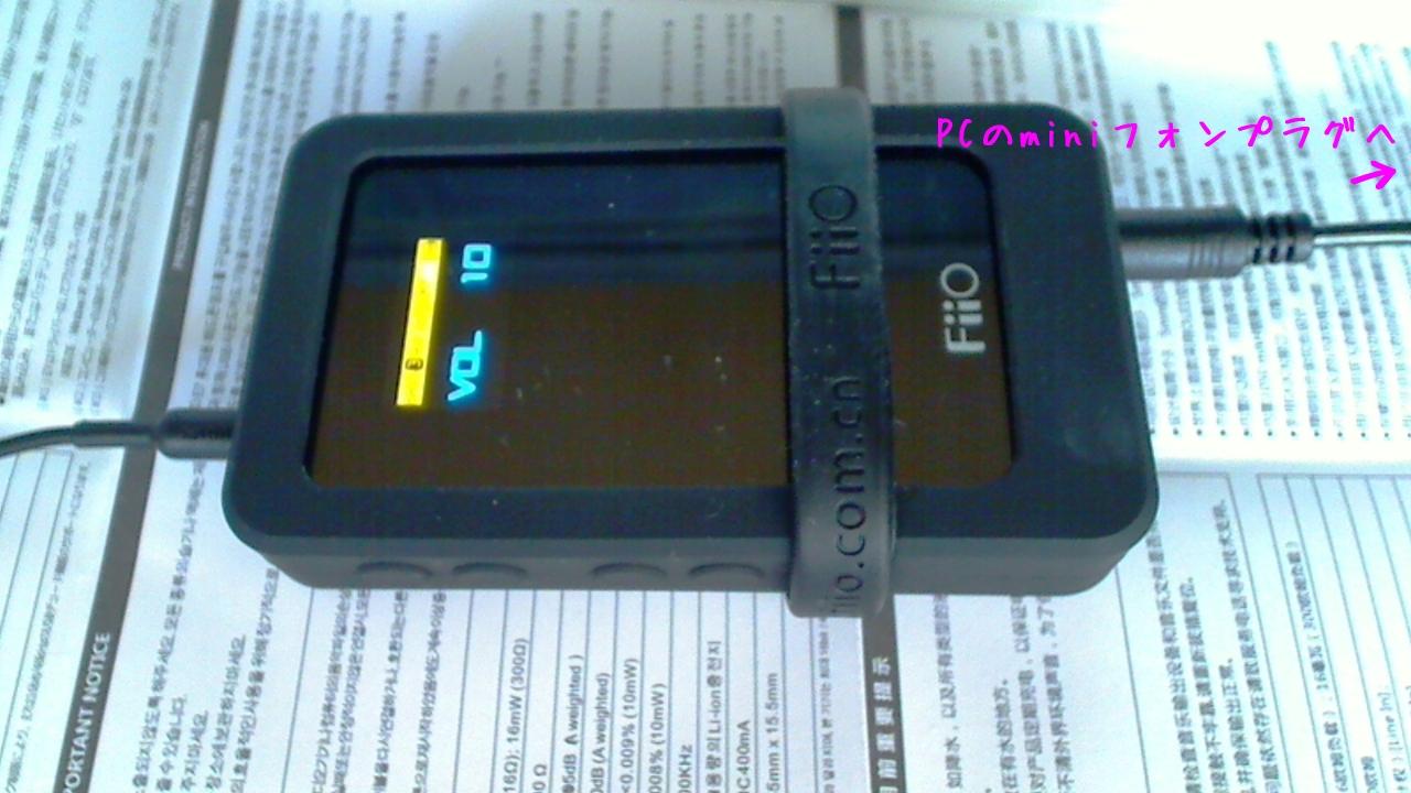 PC→付属のUSBケーブル→E7本体MINIusbポート→E7本体ヘッドホン出力→イヤフォン・ヘッドフォン