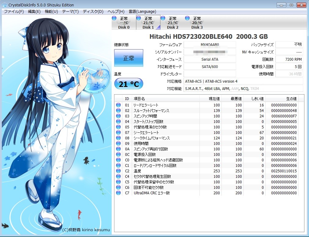 参考URL:PCマスターへの道(HDDの状態をチェックする CrystalDiskInfo)