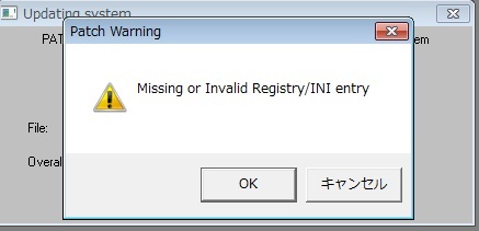ここでキャンセルを押して一度ゲームを起動してからパッチを当ててください。