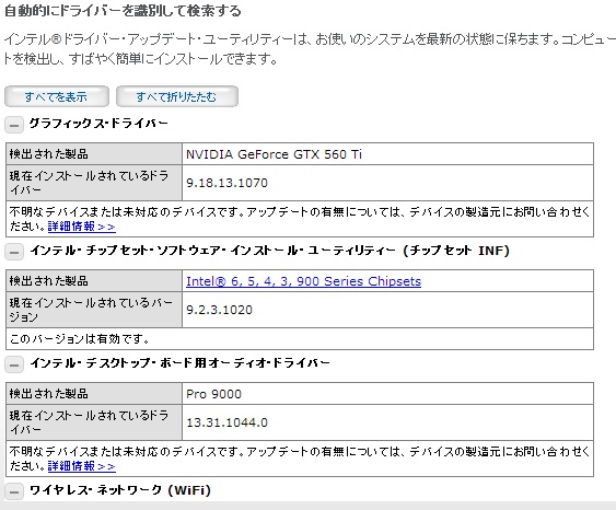 参考URL:Intelドライバーアップデート