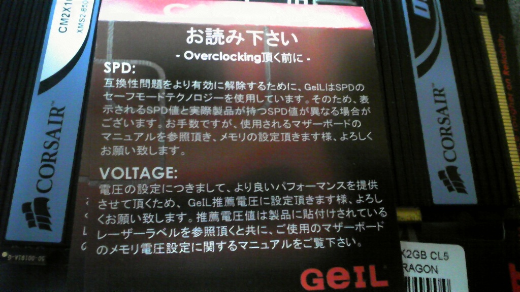 (DDR2 PC2-8500 2GB 2枚組)×2買った。