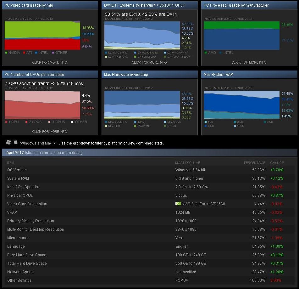Steam ハードウェア & ソフトウェア 調査 April 2012