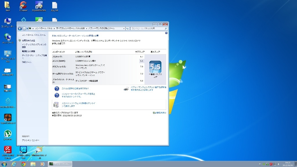 Ramは64bitOSで2G使用なので、流石に低いw