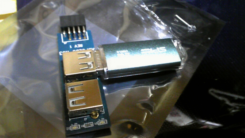 USBメモリはPCケース外付けが嫌だから内部接続で、Type-A USB 9pinに装着できる