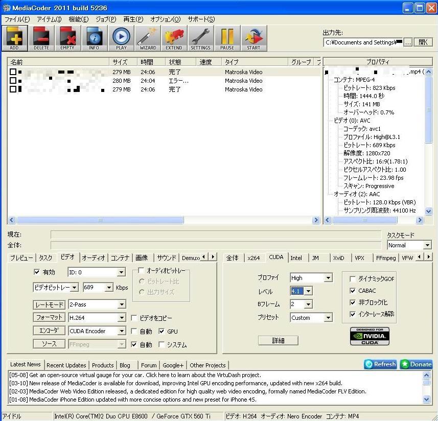 でも、MediaCoderの場合2-passできないんだよね・・・残念(cuda 2-passはどのソフトでも不可能?)。