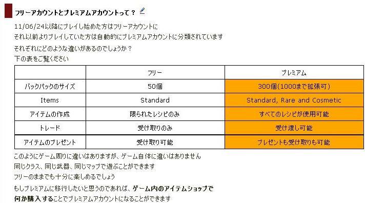 無料版と有料版の違い(TF2 JP wikiより)