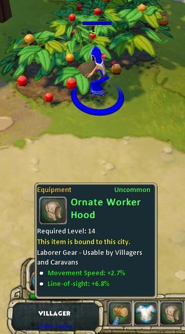 あとは作成したアイテム(ORANTE WORKER HOOD)を右クリックして装備するだけ。