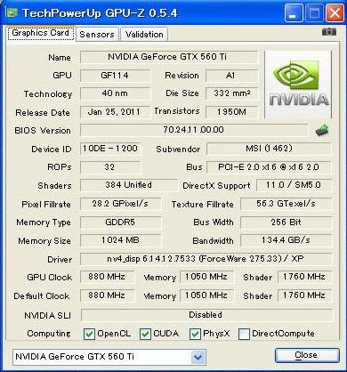 GTX560ti GPU-Zの表示。