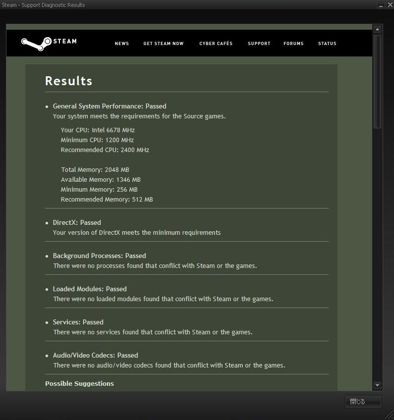 診断結果出力は英語で、通常ならデスクトップに[SteamResults.html]が出力される。