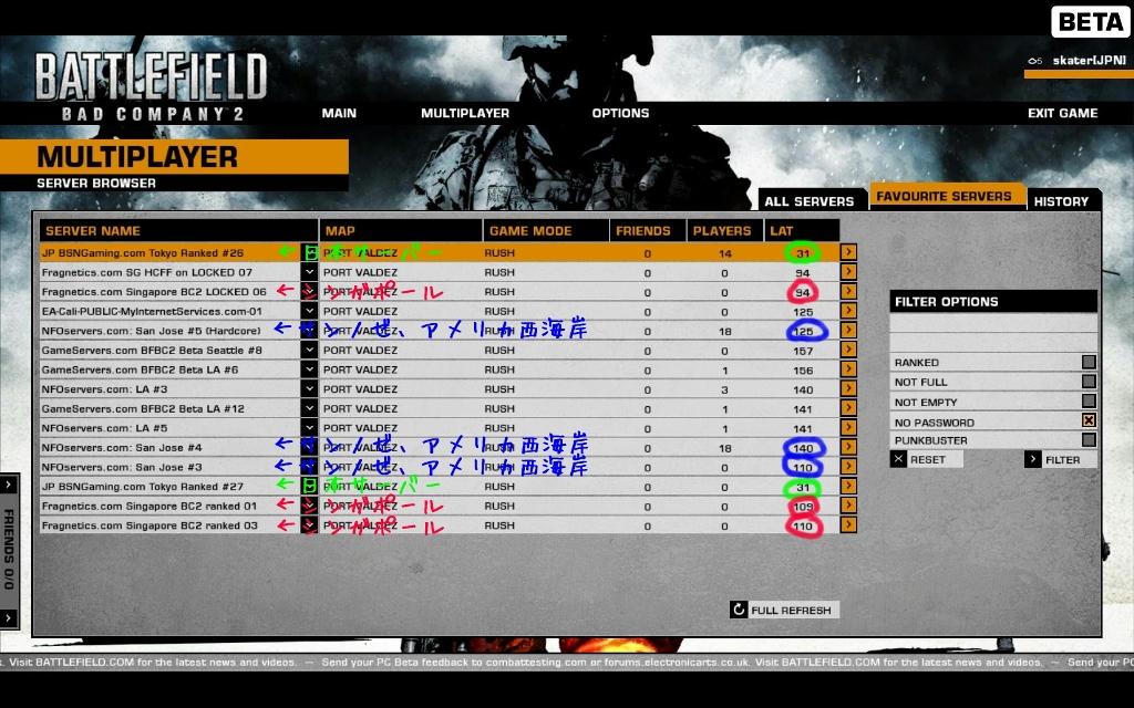 Battlefield Bad Company 2 Beta(BFBC2β) 日本サーバー(鯖・server)は、